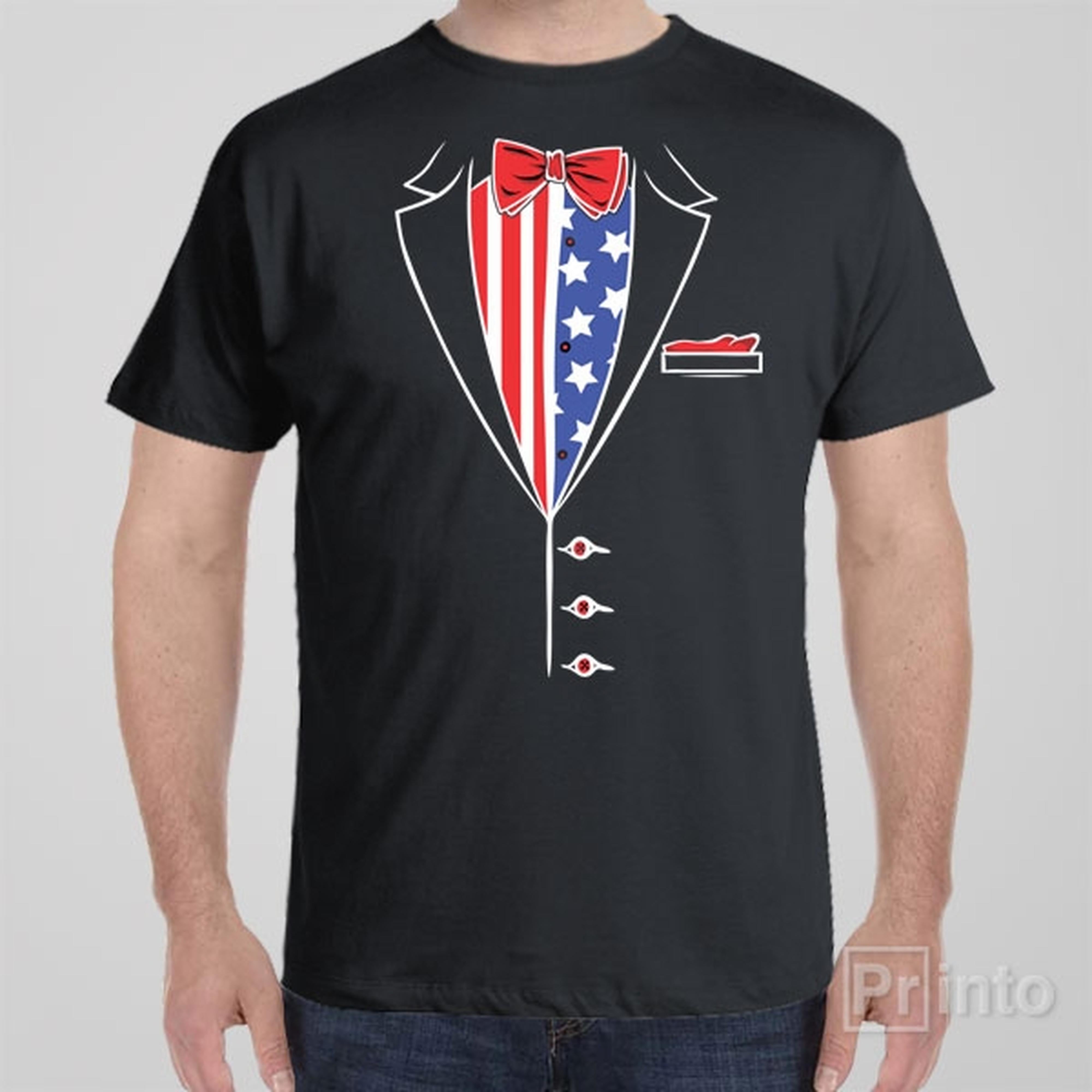 As the vintage and perfect way to portray ‘smart casual’, this American tuxedo t-shirt is a must-have. Not only does this offer a hilariously charming design that you should find super-easy to love, it’s a great 100% cotton t-shirt. Don’t worry, we use 100% pre-shrunk cotton to make sure that you are wearing a suit, rather than showing off your birthday suit!