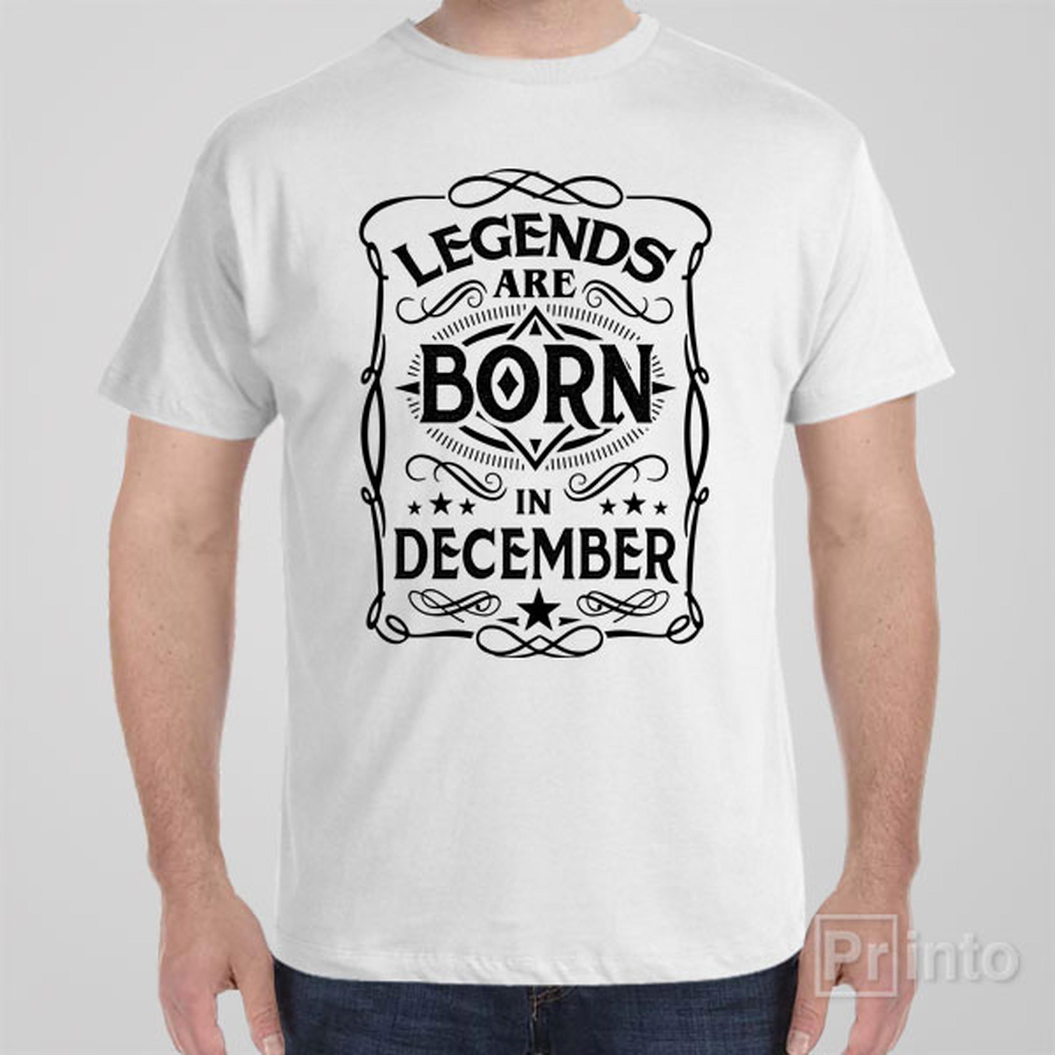 So, stick on one of these LEGENDS ARE BORN IN DECEMBER t-shirts and let the world know that you are like many of the finest people in the world and hail from the last month of the year.